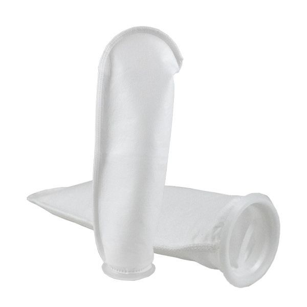 Elemento Bag fabricado em feltro agulhado de polipropileno com aro plástico, ideal para aplicações que exigem resistência química, leveza e compatibilidade com fluidos sensíveis ao contato com metais.