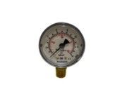 Manômetro com tubo bourdon, diâmetro nominal 50mm, internos em liga de cobre, caixa em ABS, visor de policarbonato, precisão de 3/2/3%, saída reta, conexão de 1/4" NPT, escala de 0-14 KGF/CM² com logotipo TECHFILTER.
